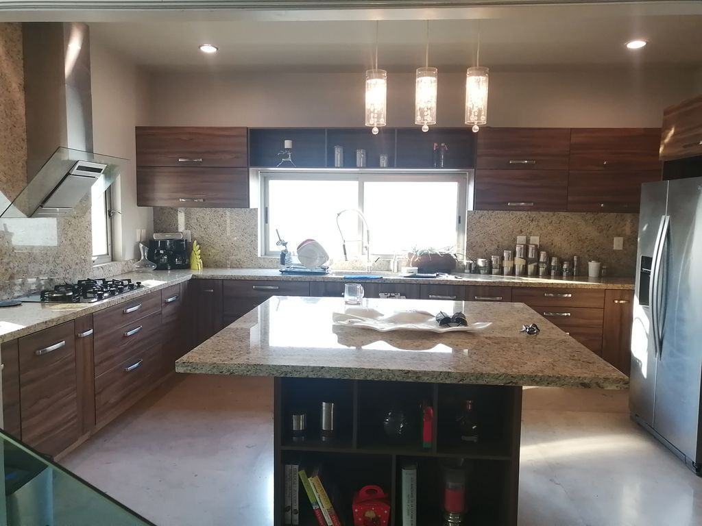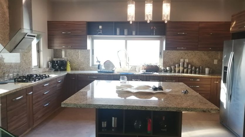 - Gran cocina equipada con enorme isla central con placa de granito